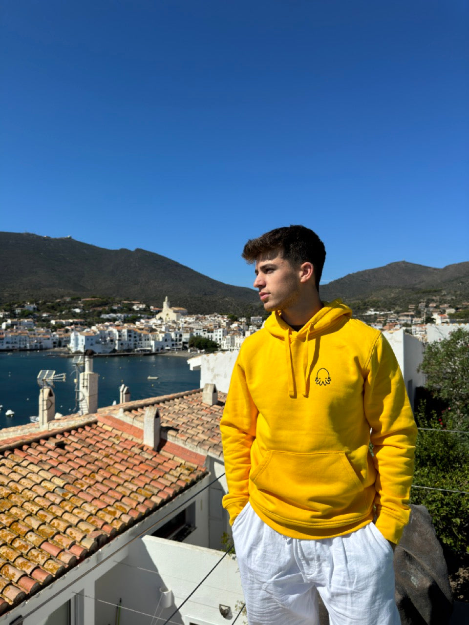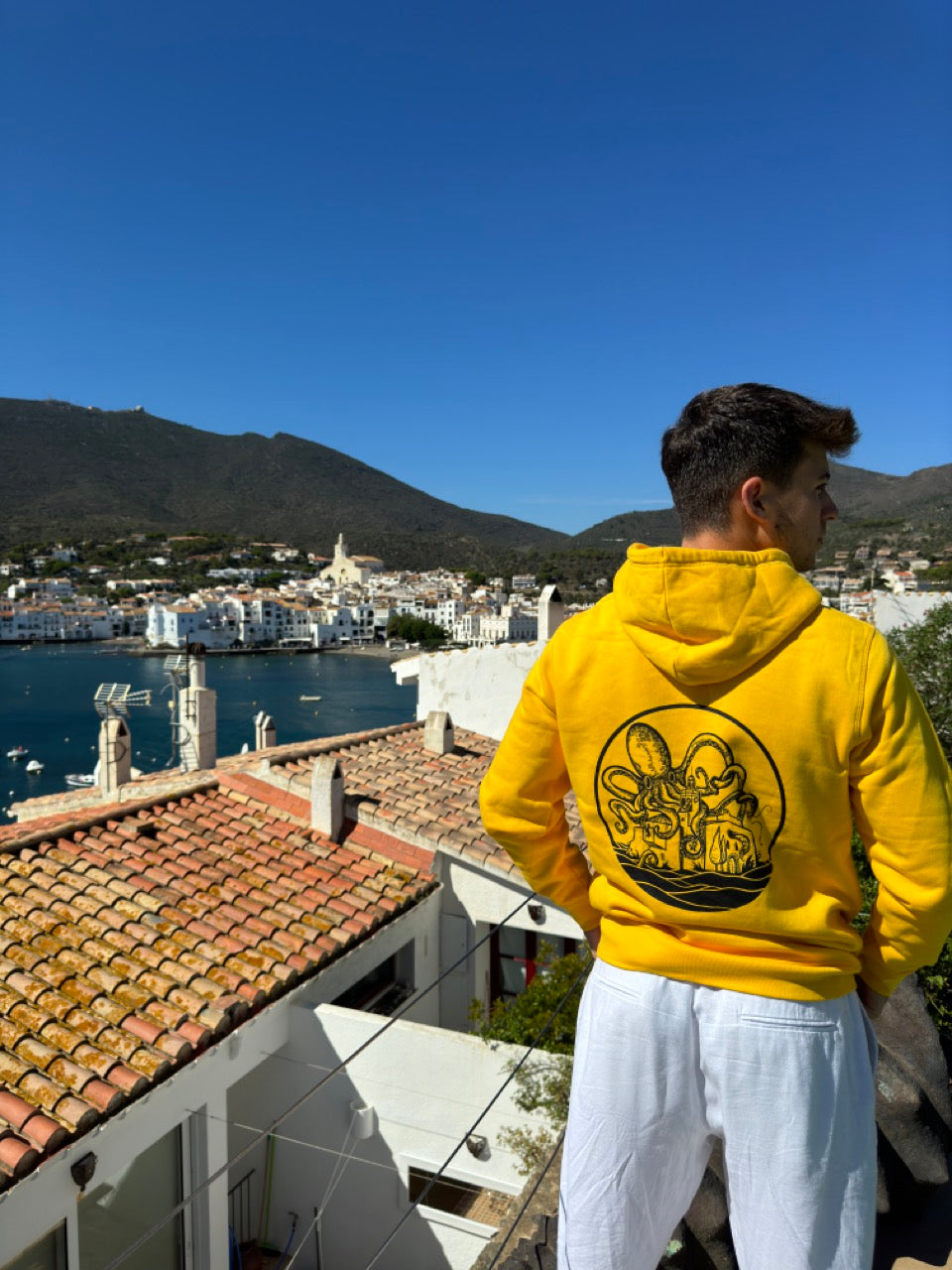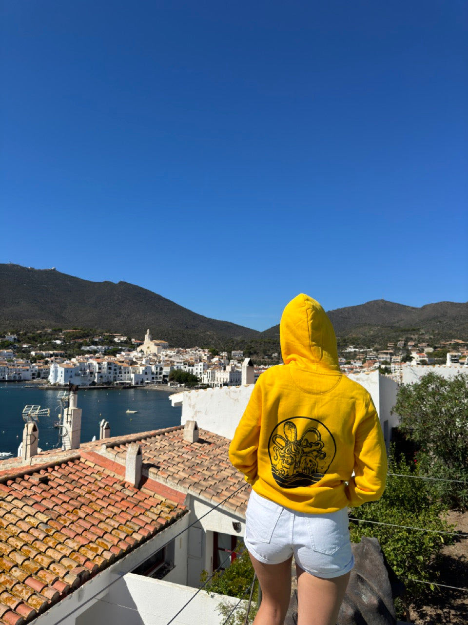 Dessuadora de teixit ecològic i serigrafia artesanal amb tintes biodegradables .
